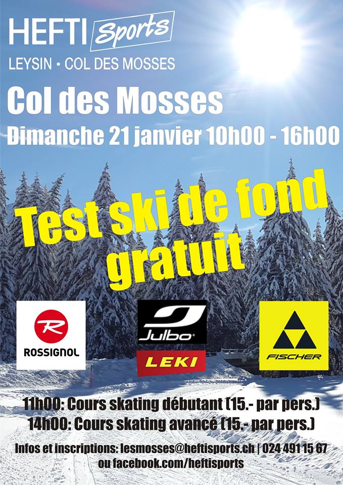 Cross country skiing test in Les Mosses on Sunday January 21 with Rossignol , Fischer Sports Nordic Ski, LEKI &  Julbo Eyewear, The ski school of les Mosses will provide ski lessons. Do not hesitate to join us!